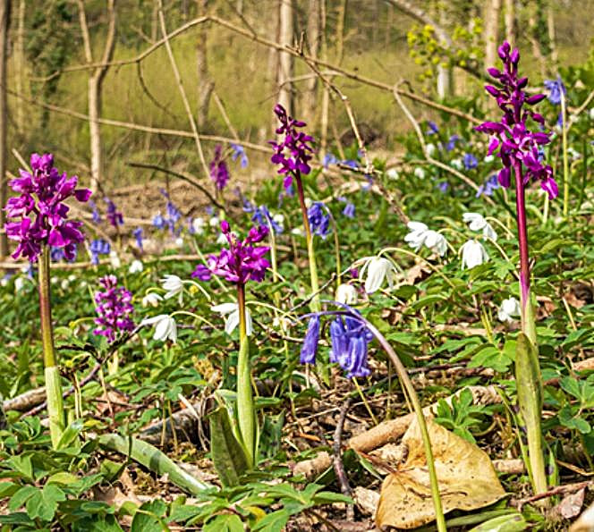 Early Purple Orchid (Orchis mascula): Noted at Lea & Paget's Wood and Credenhill Park Wood.